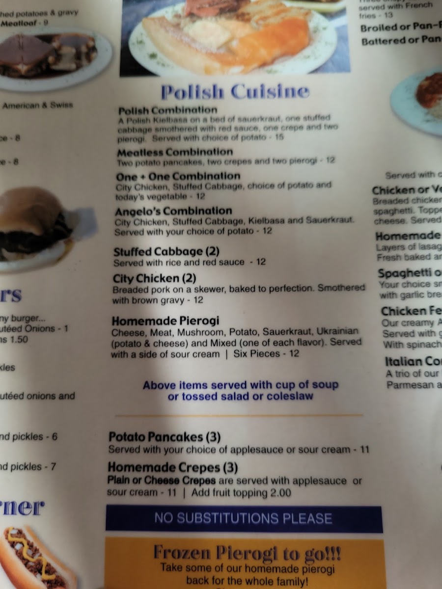 The menu also reflects a blend of cultural influences with Polish combinations and Italian-inspired dishes, providing a diverse yet cohesive experience. Whether settling in for a quick meal or lingering over coffee and comfort food, guests often find Angelo’s a convenient spot for everyday dining.